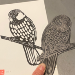 Participants (age 16+) will be guided through designing, carving, and printing a small linoleum block on 5”x7” paper, and will also create and carve a small chop or signature stamp to use on prints. The theme of the workshop will be creating prints of small songbirds, but participants are welcome to create an image of anything they would like. Participants will leave the workshop with their carved linoleum block, chop, and several copies of their print on a variety of papers.